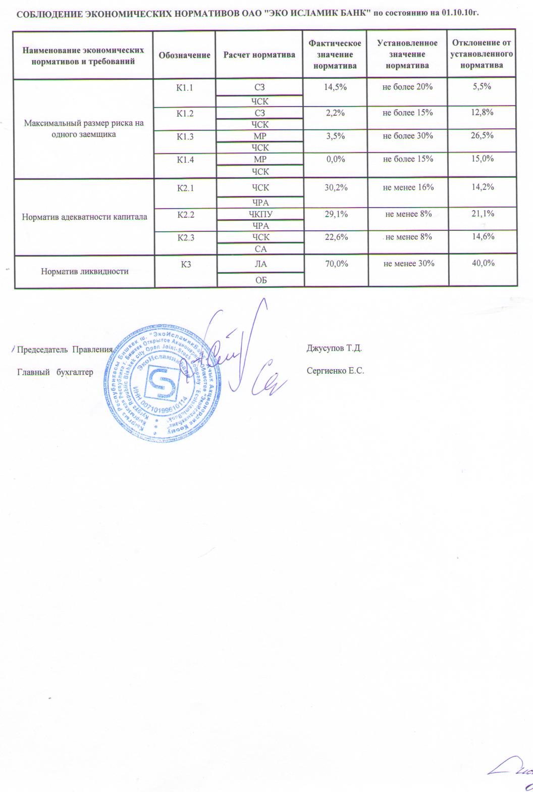 Соблюдение нормативов за III квартал 2010 года Скачать