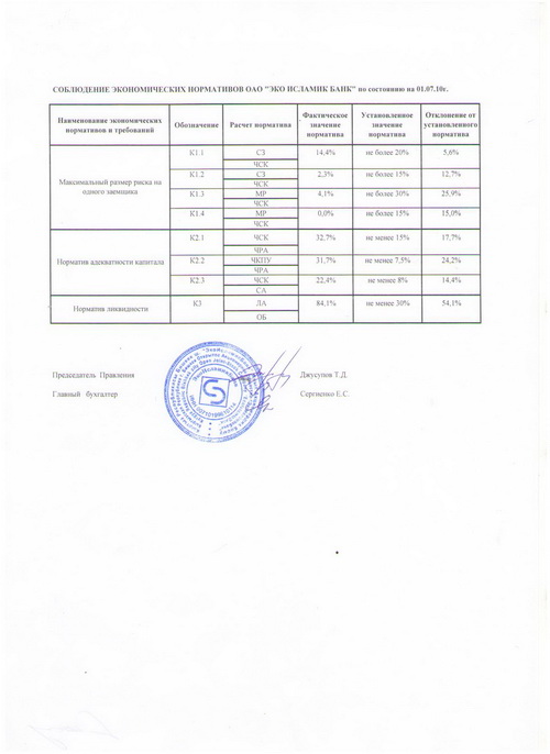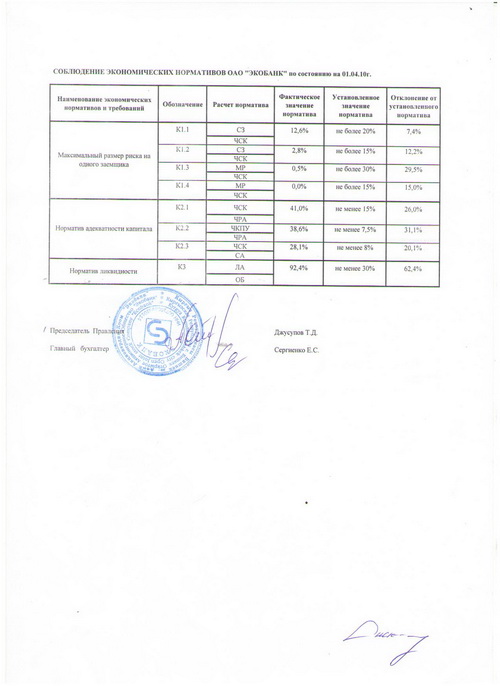 Соблюдение нормативов за II квартал 2010 года Скачать