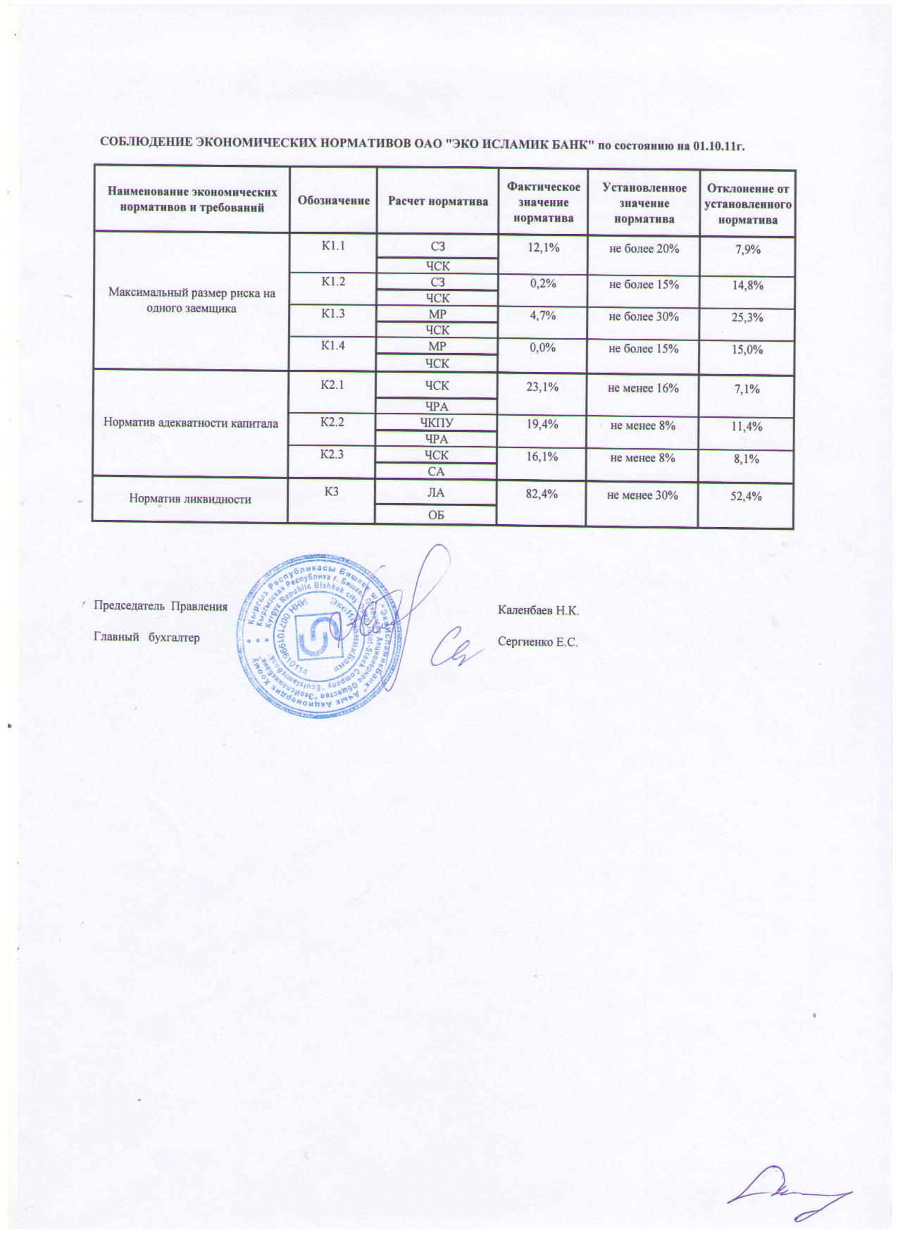 Соблюдение нормативов за III квартал 2011 года Скачать
