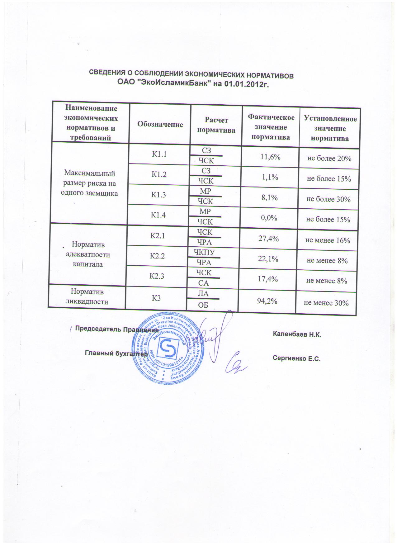 Соблюдение нормативов за II квартал 2012 года Скачать