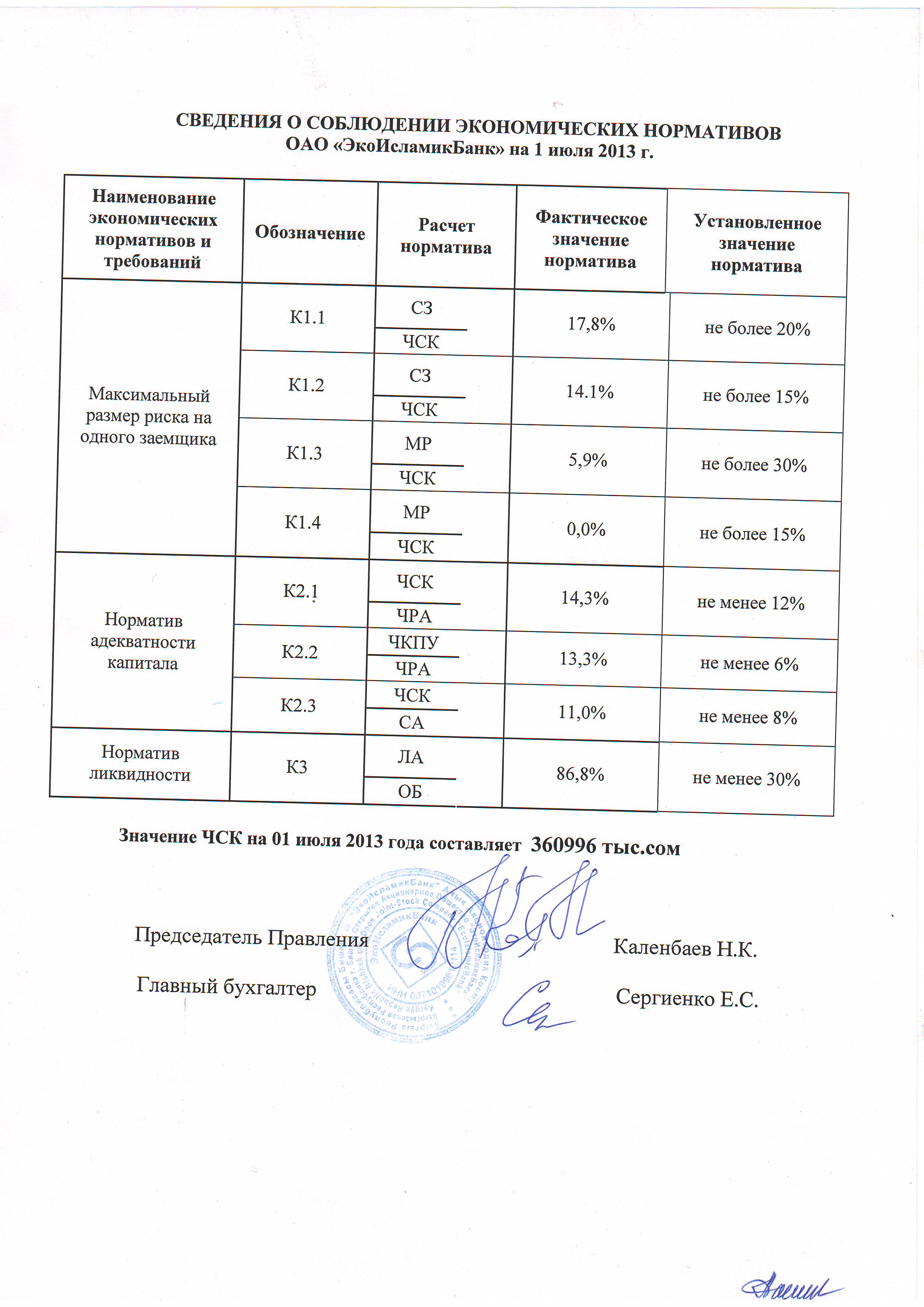 Соблюдение нормативов за II квартал 2013 года Скачать